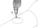 Boor op de lijn van het afgetekende gat een aantal kleine gaatjes, zo dicht mogelijk bij elkaar. Gebruik hiervoor een steenboor van 5 mm. Probeer bij het boren niet te veel kracht te zetten, maar laat de boor het werk doen.