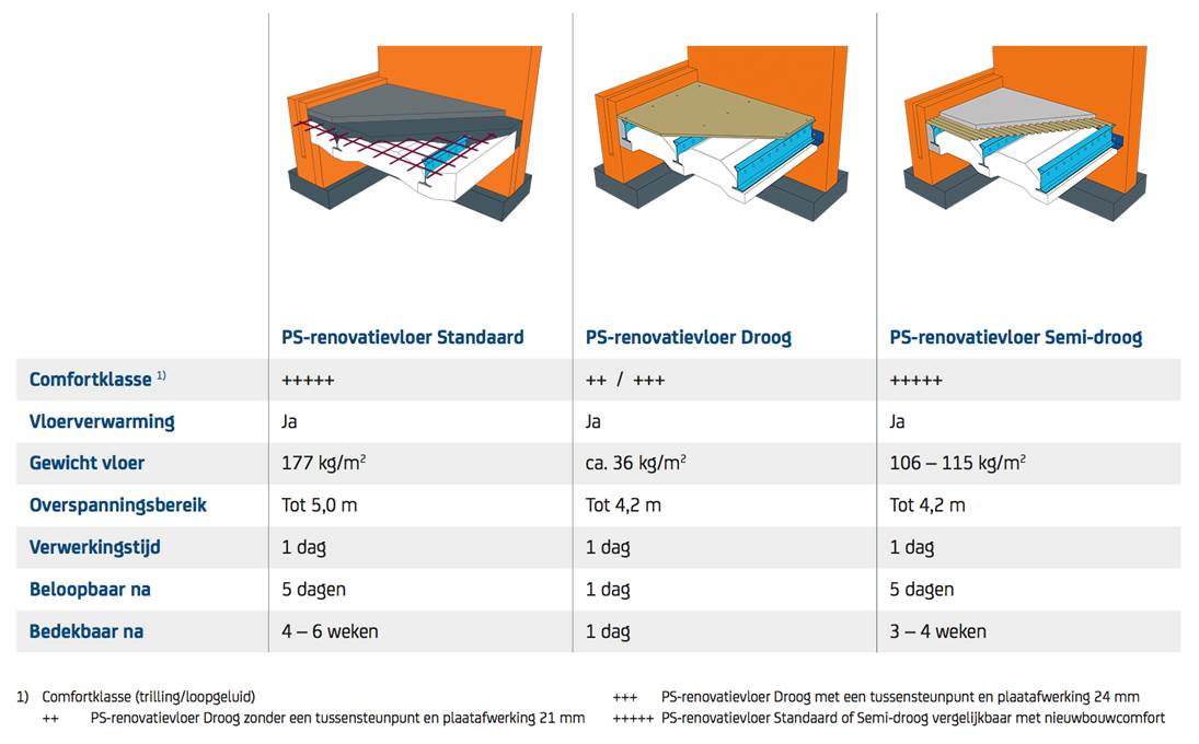 De verschillende typen van de PS-renovatievloer bieden een goed geïsoleerde vloer, ongeacht het type dat u kiest. Er zijn echter wel verschillende in de manier waarop de vloer wordt opgebouwd en verwerkt. Hierbij zijn een aantal factoren doorslaggevend voor de keuze van het type renovatievloer, dit zijn: