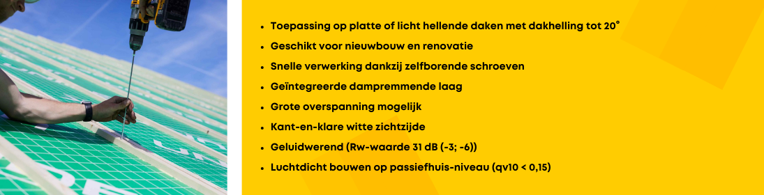 Constructief alles-in-1 dakelement voor platte en licht hellende daken.