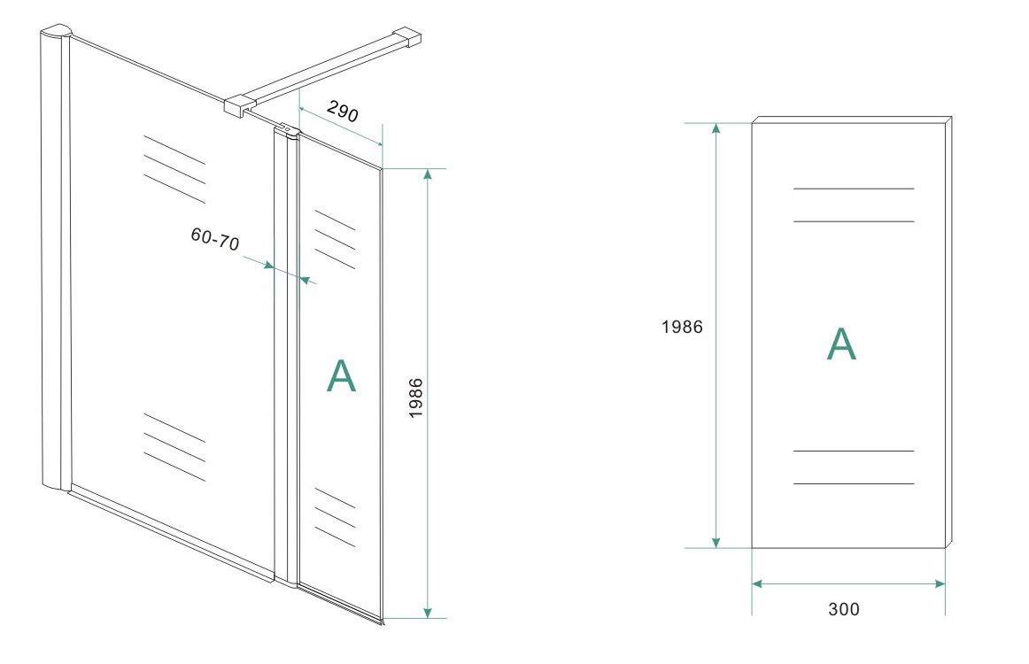 Deze zijwand kan gedraaid worden in lijn met de douchewand of 90 graden gehoekt.