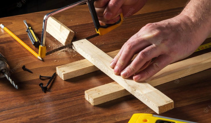 Zaag twee latjes op maat, ongeveer vijf centimeter langer dan de lange zijde van de uitgezaagde rechthoek. Deze supportlatjes gaan dienen als steun voor de opvulling.