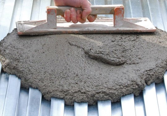 Nu kan de vloer gestort worden met beton. Als u geen vloerverwarming gebruikt is 20 mm voldoende. Plaatst u wel vloerverwarming, dan is een dekvloer van minimaal 40 mm nodig. Na het storten kunt u de toplaag van uw renovatievloer egaliseren. U kunt de betonlaag afwerken met een schuurbord. De toplaag moet na het storten regelmatig natgespoten worden, om te voorkomen dat deze te snel droogt.