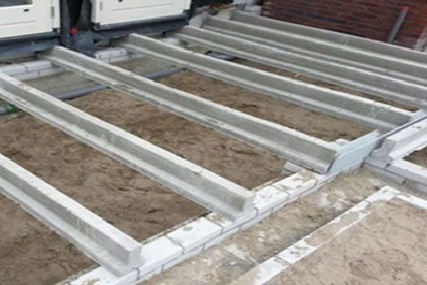 De betonnen combinatievloer liggers moeten op een waterpas fundering worden geplaatst. Kies altijd voor de korst mogelijke overspanning. Voor een renovatieproject kan dit betekenen dat u gaten moet hakken in de bestaande muur, zodat daar de liggers in geschoven kunnen worden. Houd er hierbij rekening mee dat de liggers aan beide kanten een oplegging van minimaal 10 cm hebben. Afhankelijk van de eisen wordt een hart-tot-hart afstand aangehouden van 50 – 60 cm. Deze afstand is afhankelijk van de belasting van de combinatievloer. Als de vloer zwaar belast wordt, zoals bijvoorbeeld in een garage, wordt voor een kleinere afstand tussen de liggers gekozen.