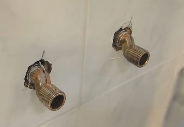 Plaats de nieuwe S-koppelingen losjes op de leidingen en schroef hierop de nieuwe kraan vast. Een douchekraan heeft een hartafstand van 120 of 150 millimeter tussen de leidingen. Controleer goed welke afstand u nodig heeft, zodat u een kraan aanschaft die gaat passen. Zorg er voor dat alles waterpas hangt en zet met een viltstift een recht streepje op de tegel én op de koppeling. Zo zorgt u ervoor dat de koppelingen bij het monteren op dezelfde plek zitten.
