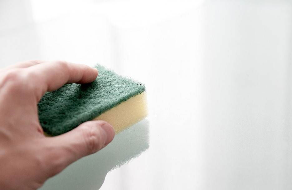 Maak het gat of de scheur schoon met een ontvetter. Ontvet ook het oppervlak rondom het te repareren gebied.