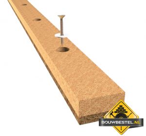 Deze 40mm regel bestaat uit een 20 mm spaanplaatregel met daaronder een gelijmde en mechanisch bevestigde ecologische laag kokosvilt van 20mm. In de spaanplaatregel zijn om de 290 mm gaten van Ø 20 mm aangebracht. Door het vastdraaien van een 50mm tellerkopschroef (flenskopschroef) of een schroef met volgring (Ø 20 mm) in het gat zal de ring het kokosvilt indrukken en vastzetten.
