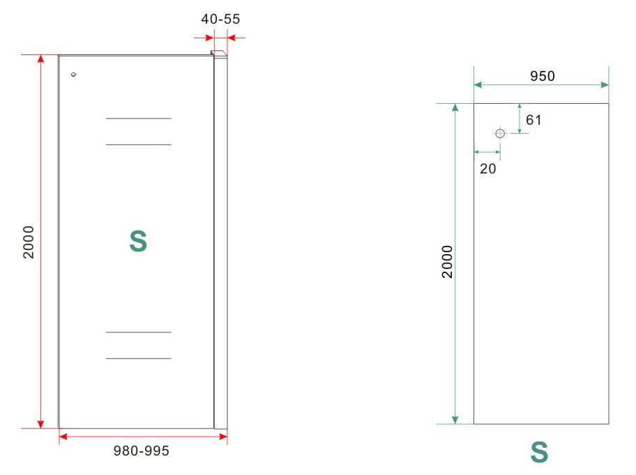 Inbouwbreedte wand voor montage met deur | 985 | 1000 mm |