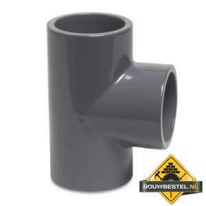 T-stuk 90 graden PVC-U 63 mm lijmmof 16 bar grijs
