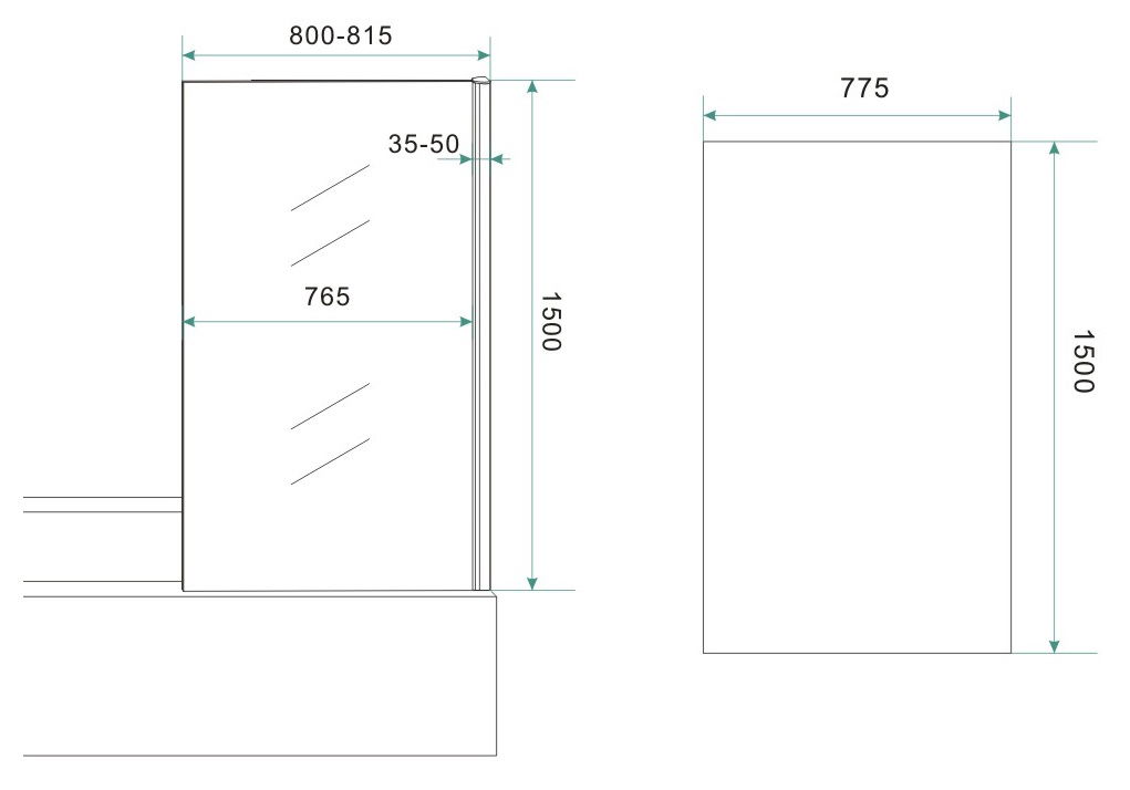 Totale hoogte vanaf badrand: 1500 mm