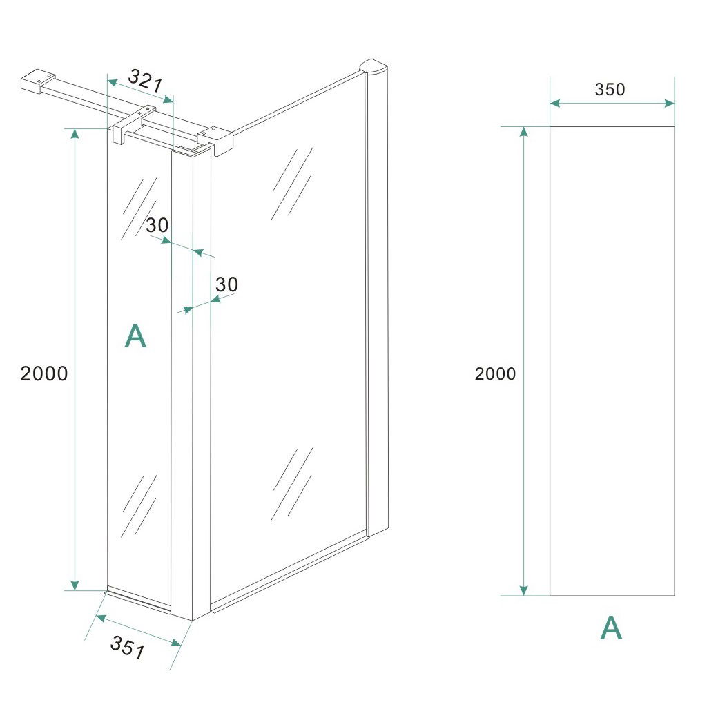 Deze Frosted hoekwand van Wiesbaden is gemaakt van 10 mm dik gehard veiligheidsglas en met NANO-coating afgewerkt.