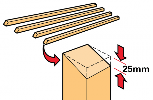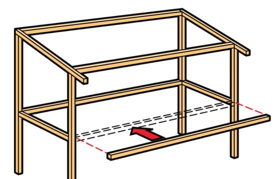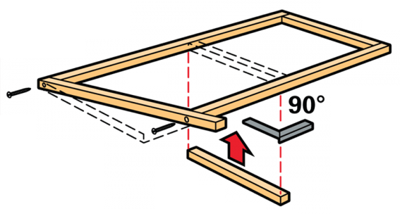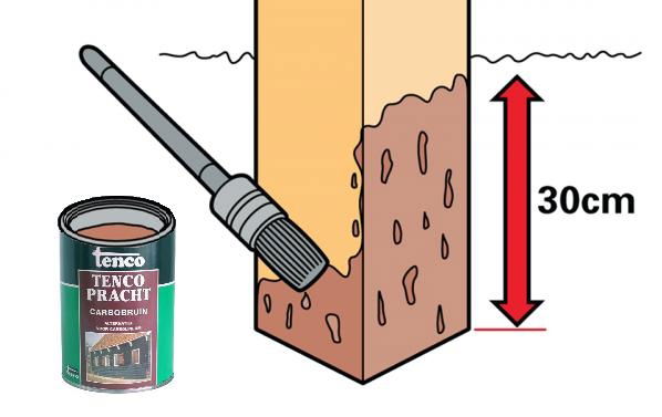 Voor dit project gebruiken we palen / staanders en verbindingslatten van verduurzaamd vurenhout met kopmaat 5 x 10 cm. Bepaal eerst plaats waar de staanders moeten komen staan en bedenk hoe breed en hoog u de haardhout opslag wilt maken. Een veel voorkomende afmeting is 1,85 m hoog, 60 cm diep en 2 meter breed. Houd er bij de lengte van de staanders rekening mee dat deze ook nog de grond in moeten.Stap 1 | Staanders makenDe eerste stap is het maken van de vier staanders. Zorg eerst dat u vier palen heeft in de gewenste hoogte van de opslag. We gaan uit van een gewenste hoogte van 185 cm. Omdat de staanders nog zo'n 30 cm de grond in moeten, heeft u vier palen van 215 cm nodig. Zaag alle vier de palen aan de bovenzijde schuin af. Het verloop voor de dakhelling bedraagt 25 mm. De smalle kant van het hout dient naar voren te wijzen.Stap 2 | Dakbalken makenZaag nu twee balken voor het dak in de juiste lengte. Uitgaand van een diepte van 60 cm, dient u de balken om 90 cm te zagen. Deze extra 30 cm is nodig in verband met de waterafloop van het dak. Zaag ook deze twee balken af met een verloop van 25 mm. Let er op dan allebei de zijden evenwijdig zijn.Stap 3 | Zijpanelen maken en monterenLeg de voorste en achterste paal op een vlakke ondergrond, met de brede kanten op de grond. Zorg nu dat de afgezaagde schuine vlakken evenwijdig naar elkaar liggen. Verbind de palen aan de bovenzijde met de dakbalk op de gewenste breedte met een uitsteek van 30 cm. Boor de gaten voor met een dunne houtboor om scheuren in het hout te voorkomen. Draai de schroeven nog even niet te vast en gebruik voorlopig maar één schroef per verbinding. Verbind de staanders nu halverwege met een dwarslat. Draai ook deze schroeven niet helemaal vast. Controleer met een winkelhaak of de dwarslat haaks zit (met hoeken van 90 graden). Zo ja, draai dan alle schroeven vast.Voor het rechter zijpaneel dient u op dezelfde manier te werk te gaan. Let er op dat u gespiegeld dient te werken!Stap 4 | Bovenste lengtebalken monterenZet beide zijpanelen rechtop en verbind de bovenste achterste lentebalk gelijk met de daklat tegen de staander. Boor eerst de staander voor en schroef vervolgens de voorste bovenste lengtebalk aan beide zijpanelen vast. De lengtebalken vallen 'tussen' het frame. Voor een haardhout opslag van 200 cm breed, heeft u lengtebalken van 190 cm nodig. De zijpanelen zijn ieder 5 cm breed.Stap 5 | Middelste lengtebalken monterenNu de bovenste lengtebalken gemonteerd zijn begint de opslag al vorm te krijgen. U kunt nu gemakkelijk de middelste lengtebalken monteren. Monteer de achterste middelste lengtebalk op gelijke hoogte met de dwarslat van de staanders. Bevestig daarna de voorste middelste lengtebalken en schroef deze tussen de voorste staanders vast.Stap 6 | Dakplaat plaatsenVoor het dak kunt u het beste 18 mm dik watervast multiplex gebruiken. Let op dat de dakplaat aan de twee zijden en aan de voorzijde zo'n 30 cm moet uitsteken. Plaats de dakplaat op het frame, zodat de achterzijde uitgelijnd wordt met het frame van de achterzijde. Zorg dat de dakplaat aan weerszijden evenveel uitsteekt. Schroef daarna de plaat aan het frame vast.Stap 7 | Dak bedekkenU kunt het dak op verschillende manieren bedekken. Zo zou u het dak kunnen bedekken met een minigolfplaat. Ook kunt u het dak bekleden met een zelfklevende dakrol.Stap 8 | Zijkant bekledenU kunt de zijkant van de haardhout opslag bekleden met rabatdelen. Ook kunt u, voor een betere ventilatie, de zijkant betimmeren met latten. In dat geval kunt u evenveel ruimte tussen de latten laten als dat deze breed zijn. U kunt nu ook een legplank in de haardhout opslag plaatsen. Deze kunt u maken van watervast multiplex of van de rabatdelen of latten die u voor de zijkanten hebt gebruikt.Stap 9 | Bescherming aanbrengenHet onderste deel van de staanders kunt u behandelen met een een houtbeschermingsmiddel. Plaats de haardhoutopslag tegen een muur en graaf de poten minstens 30 cm in. Zet de staanders vast tegen de muur met schroeven en pluggen van 8 mm.Maak tenslotte met kit de opening tussen de muur en het afdak van de haardhout opslag waterdicht.