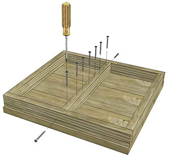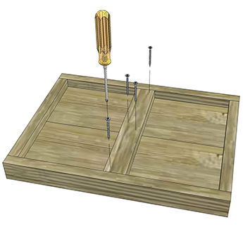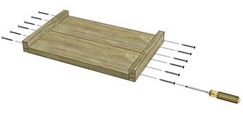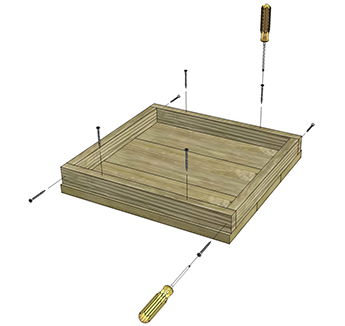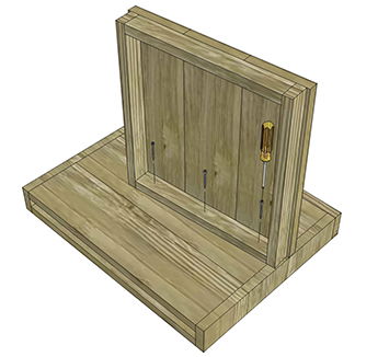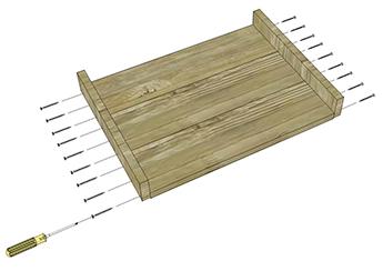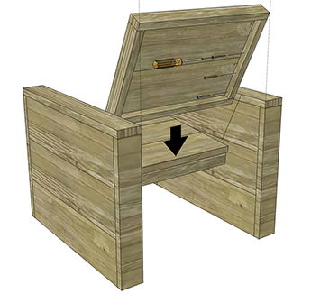 De steigerplanken van Bouwbestel zijn ongeveer 20 cm breed, 3 cm dik en 500 cm lang. Steigerhout heeft een tolerantie, wat wil zeggen dat er altijd een klein maatverschil zit in de breedte van de planken.Stap 1 | Armleuningen makenEr moeten twee armleuningen gemaakt worden. Leg hiervoor drie steigerplanken van 74 cm lang naast elkaar volgens de afbeelding. U kunt hier iets zwaars op leggen om ze tijdens het schroeven bij elkaar te houden. Plaats twee planken van 60 x 10 cm tegen de kopse kant van de planken en schroef deze vast met drie schroeven van 5 x 80 per liggende plank. U hoeft deze schroeven niet voor te boren.Schuif nu twee planken van 80 cm tegen de armleuning aan volgens de afbeelding en schroef deze vast met drie schroeven van 5 x 80. Er onstaat nu een soort bak.De armleuning moet nu gesloten worden. Leg hiervoor drie steigerplanken van 74 cm naast elkaar en schuif de armleuning (bak) erover. Schroef de drie planken vervolgens vast in de bak met drie schroeven van 5 x 80 per kopse kant en drie schroeven van 5 x 80 aan de lange zijdes.U heeft nu één armleuning gemaakt. Maak de tweede armleuning op dezelfde manier.Stap 2 | Zitting makenLeg drie steigerplanken van 60 cm lang naast elkaar en schroef twee latten van 50 x 6 x 3 cm op de kopse kanten van de planken, zodanig dat er 4 cm tussen de kopse kant latjes en de langszijde van de plank overblijft. Schroef de twee latten vast met schroeven van 5 x 80. Twee of drie schroeven per liggende plank.Schroef vervolgens twee planken van 60 x 6 x 3 cm tegen de kopse kant van de zojuist gemonteerde latten. Let op dat er 1 cm overstek overblijft aan de voorzijde en achterzijde.Schroef een latje van 50 x 6 x 3 cm in het midden vast met schroeven van 5 x 80. De zitting is nu gereed voor montage.Stap 3 | Achterleuning makenLeg voor de achterleuning twee steigerplanken van 53,5 cm naast elkaar en schroef deze aan de kopse zijde aan elkaar vast met latten van 39 x 6 x 6 cm. Gebruik hiervoor weer schroeven van 5 x 80 cm.Schroef nu twee latten van 60 x 6 x 3 cm vast aan de lange zijden van de achterleuning en schroef als laatste een lat van 39 x 6 x 3 vast in het midden met schroeven van 5 x 50. Let op dat deze lat plat dient te liggen.Stap 4 | Stoel monterenAlle onderdelen van de stoel zijn nu klaar. U kunt nu beginnen met de montage. Allereerst dient u de hellingshoek van de zitting af te tekenen op de armleuningen. Trek een lijn van de voorzijde van de armleuning ter hoogte van de tweede plank (ongeveer 40 cm) naar een punt aan de achterzijde van de armleuning. Het punt aan de achterzijde dient 5 cm lager te zijn dan het punt aan de voorzijde. Doe hetzelfde in spiegelbeeld op de andere armleuning.Leg hierna de armleuning plat op de grond en plaats de zitting langs de getekende lijn zodanig dat de voorzijde van de zitting niet voorbij de armleuning uitsteekt. Schroef de zitting vast met drie schroeven van 5 x 60.Kantel de stoel nu 90 graden, schuif de tweede armleuning tegen de zitting aan en schroef deze ook vast met drie schroeven van 5 x 60.Zet nu de stoel rechtop. Teken daarna de hellingshoek van de achterleuning af op de zitting. Het beginpunt is de bovenzijde van de tweede plank (ongeveer 40 cm) en 25 cm van de achterkant van de armleuning af. Het eindpunt is 14 cm van de achterkant van de armleuning. Deze lijn markeert de voorzijde van de rugleuning.Laat de rugleuning tussen de twee armleuningen zakken tot de tweede plank van onderen langs de getrokken lijn op de armleuning. Controleer of de bovenzijde van de rugleuning boven de achterzijde van de armleuning ligt. Het is belangrijk dat er ruimte tussen de rugleuning en zitting zit. Schroef vervolgens de rugleuning met drie schroeven van 5 x 60 vast.Wilt u de schroeven netjes wegwerken? Meng dan wat schuurafval met houtlijm en breng dit met een plamuurmes aan in de schroefgaten.